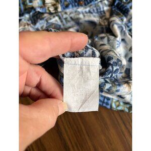 Hilo Hattie Hawaiian Original blue green white short sleeved button front collared shirt size 3XL. Pit to pit measures approximately 28”. Shoulder to hem measures approximately 32.5”. Six buttons in front. Pocket top left. Really good pre-owned condition.