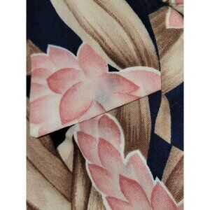 Hilo Hattie Hawaiian Shirt Large Floral Pink & Brown 100% Cotton Short Sleeve