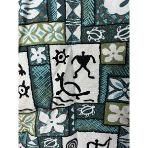 Hilo Hattie Hawaiian Shirt Mens Large Flowers Geometric Cave Style Stick Figure