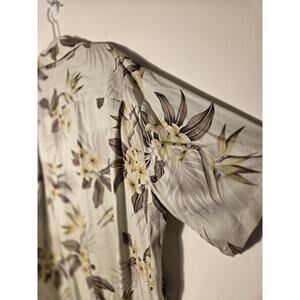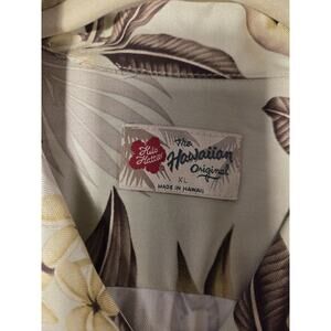 The Hilo Hattie Hawaiian Shirt in light green is a mens XL short sleeve button-up featuring a floral pattern, perfect for occasions like travel, parties, or casual outings. Made from rayon fabric with a collared neckline and relaxed fit, this shirt is machine washable and ideal for all seasons. The Hawaiian theme sets it apart, adding a touch of Aloha to your wardrobe with its woven design and button accents. Perfect for adding a pop of color to any outfit, this shirt is a stylish and comfortable choice for any man's closet.