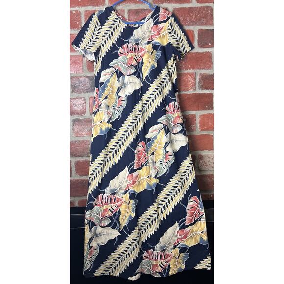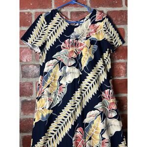 Hilo Hattie Long Maxi Dress Hawaiian Floral Tropical Cotton Rayon Size Small