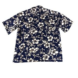 Hilo Hattie Mens Navy Blue Hawaiian Button Down Short Sleeve Shirt with pocket