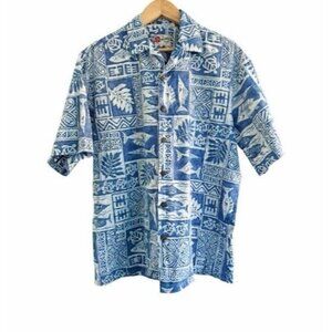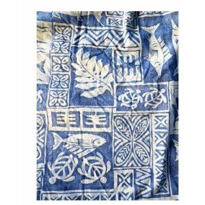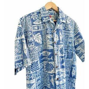 Hilo Hattie Mens Sz Large Blue White Tropcial Reverse Print Button Up Shirt Fish