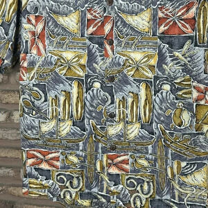 Hilo Hattie Men's Vintage Hawaiian Tribal Print Short Sleeve Shirt