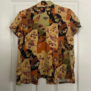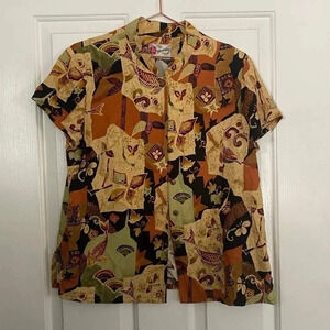 Hilo Hattie Orange Short Sleeve Geometric Hawaiian Shirt Size Medium