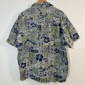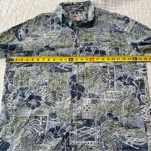 Hilo Hattie Shirt Men XL Green Floral Hawaiian Inside Out Print Theme Vacation