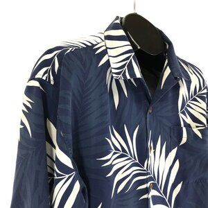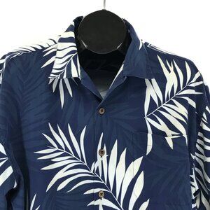 Hilo Hattie Silk Button Up Hawaiian Shirt Men's Medium Palm Print Short Sleeve