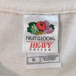 Transport yourself to the vibrant energy of Hawaii with this Fruit of the Loom Hilo Hattie t-shirt in size XL. Showcasing a bold front logo and a stunning scenic graphic on the back, this pre-shrunk cotton tee combines comfort with a touch of island charm. A subtle pinhole on the back’s top left shoulder adds character to this well-loved piece.