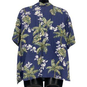 This women's aloha Hawaiian shirt from Hilo Hattie captures the essence of tropical style with its vibrant palm and floral print, suitable for casual or resort wear. Its lightweight fabric ensures comfort, making it an ideal choice for sunny days. This classic design will enhance any wardrobe with a touch of island charm.