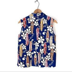 Hilo Hattie The Hawaiian Original Floral Surfboard Sleeveless Button Down Shirt
