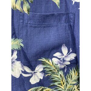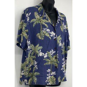 Hilo Hattie Women Size XL Extra Large Aloha Hawaiian Top Shirt Blue Floral EUC