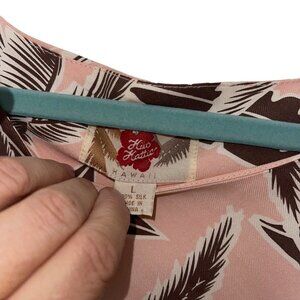 Hilo Hattie Womens Dress Size Large Pink Brown Floral Pure Silk Palm Tree