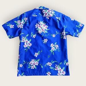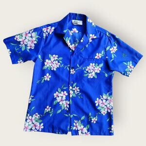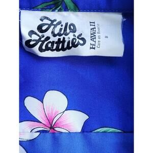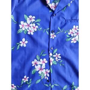 Hilo Hattie's Hawaiian Shirt Men's Sz M Blue Floral Button Down USA Made VTG