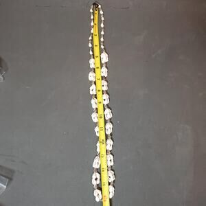 Add a touch of vintage bohemian flair to your look with this Hilo Hatties necklace! This beautiful piece features a strand of cowrie shells, interspersed with bead clusters. The necklace measures 16 inches in length and is perfect for adding a touch of the islands to any outfit. A unique and eye-catching accessory!