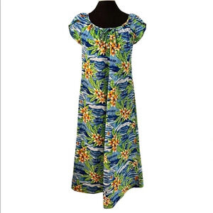 Hilo Hattie’s Plumeria Print Midi Dress Caftan Polyester XS
