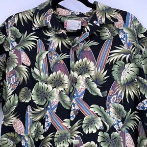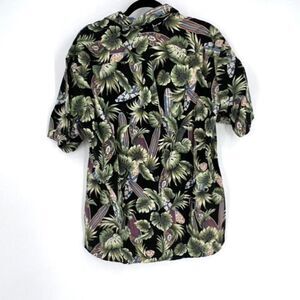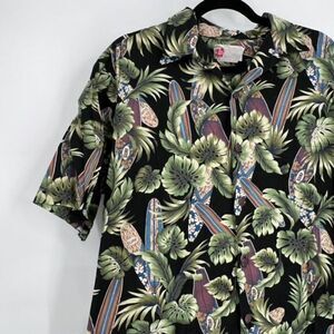 Hilo Hattie Mens Tropical Leaves Hawaiian Button-Up Shirt Black Green Size Large