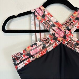 Hilor | Black and Pink Floral Colorblock Halter Style One Piece Swimsuit Medium
