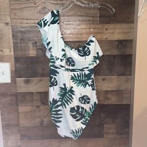 Hilor One Shoulder Palm Leaf One Piece Swimsuit m, NWT. Size 14. Super cute and flattering!