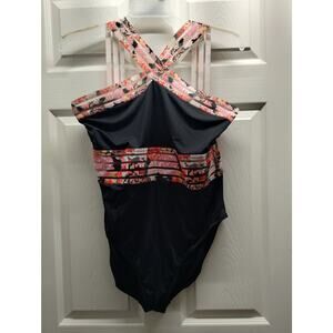 Hilor Size XXL (16) One Piece Crossover Mesh Bathing Suit Tummy Control Swimwear