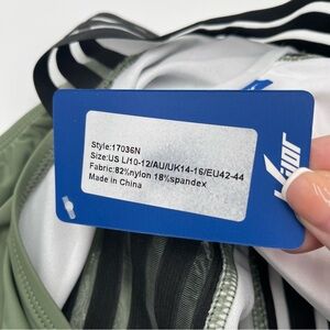 Hilor Women's One Piece Front Crossover Hollow Bathing Suit Size Large (10-12) NWT. Item is new with tags. Unused. There a few imperfections. Please see photos for details. May come out with first wash. Smoke free, pet friendly home. Colors may vary based on lighting.