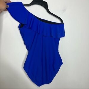 Hilor one piece swimsuit ruffle one shoulder royal blue women’s size 8