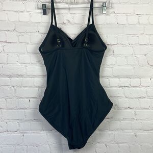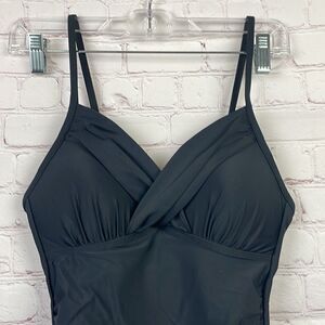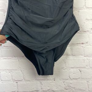 Hilor. Black One Piece slimming swimsuit w/ rouched detail on sides. Women's 6