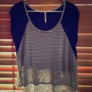 Hi-low black&white striped top