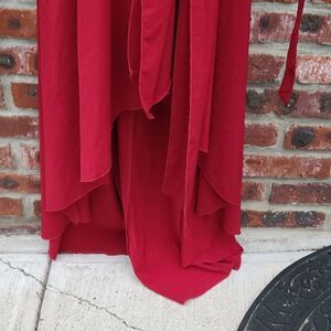 beautiful summer dress with cold shoulder sleeves. Ties waistband . Burgundy/wine color