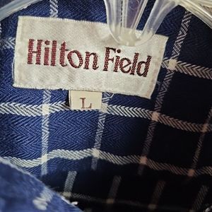 Hilton Field Men's Lg Navy Plaid Shirt Vintage Korea acrylic polyester cotton