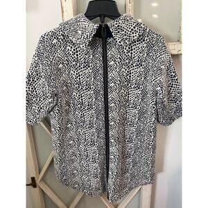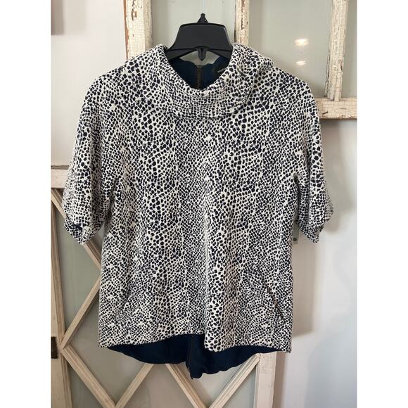 Hilton Hollis size medium navy blue and white top in excellent condition. Zips in the back and pockets in the front. Heavy fabric fully lined.
