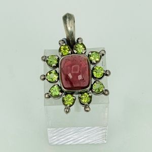 Inspired by the stones and jewelry of Kathmandu, Himalayan gems create traditional inspired pieces that are truly gorgeous. The pink and green, while very luminescent, are extremely vibrant and cheerful. Sterling Silver pendant, stamped .925. This has never been worn and in original packaging. Very dainty. It would look wonderful on a fine silver chain. Includes information inserts and box. Check out my closet for the matching ring. Feel free to bundle and save.