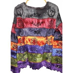 Himalayan Group Handmade Hand Painted Stonewashed Bohemian Long Sleeve Shirt XXL