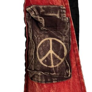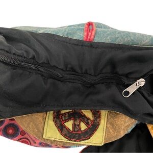 This vibrant multicolor Himalayan Peace hippie hobo crossbody bag features a unique design with peace, patchwork symbol, and intricate patterns. Perfect for adding a bohemian touch to any outfit.
