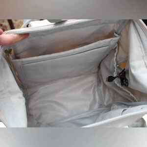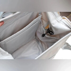 Nylon material. Genuine leather trim.