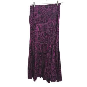 Hinano Tahiti Maxi Skirt S Magenta Tropical Western Cowgirl Boho Art Block Print