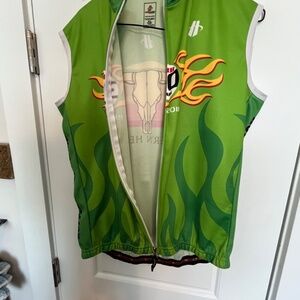 This women's wind vest by Hincapie is in excellent condition. It is a full zip and is from the Hotter N Hell ride in Wichita Falls, TX, and measures app. 20" flat under the arms.