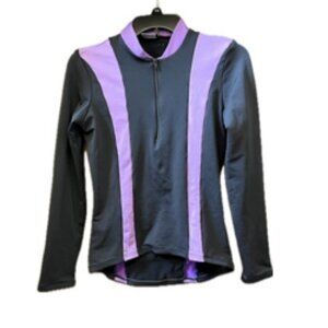 Hind women's long sleeve thermal bicycle jersey black and purple small. Three cargo pockets in back. Buttersoft inside, wind resistant outside. Stretchy fabric. 1/2 front zip.