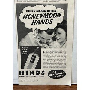 Hinds Hand Lotion Vintage Print Ad 30s Honeymoon Hands Beauty Cream Honey Almond