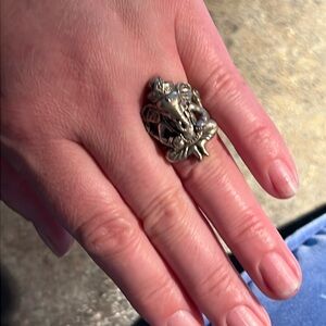 Purchased in 2008 at AsiaBarong Gallery in Great Barrington MA. Heavy, solid sterling silver ring, approximately 30 grams. The Ganesh is 1" x 1 3/8". Size 9. Please note: cover photo is of a slightly different ring, please see all photos and ask questions.
