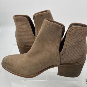 Hinge BP Barris Suede Stacked Heel Pull-On Ankle Bootie Cut-Out Taupe 7