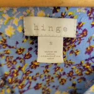 Hinge | Blue Purple Yellow Floral Print Lace Trim Short Sleeve Top Size Small