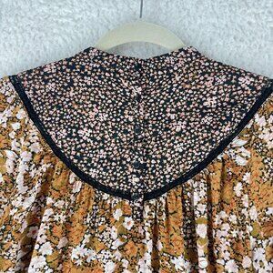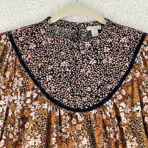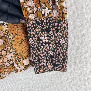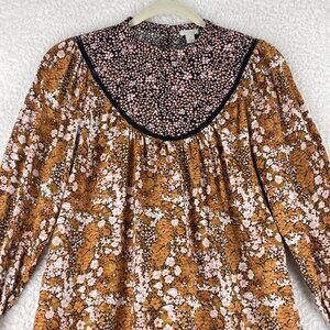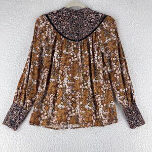 Hinge Brown Floral Mix Print Shirt Womens Prairie Chic High Neck Size XS