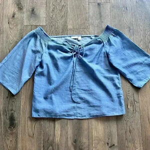 Hinge Chambray Off Shoulder Top Blouse Size XS Boxy Lightweight Blue Flare