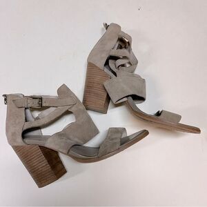 Hinge Cora Block Heel Sandal tan TAUPE SUEDE open toe strappy zip up bootie 9