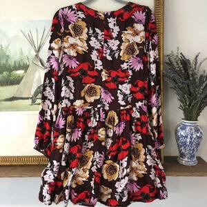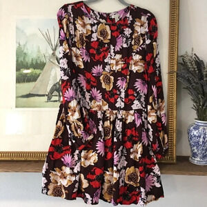 Hinge Fall Floral Tunic Dress Mini Long Sleeve