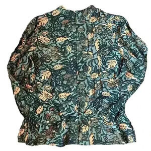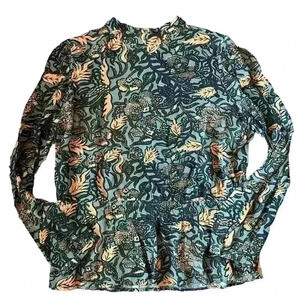 Hinge Floral Peplum Viscose Blue Orange Blouse Size Medium Mock Neck
