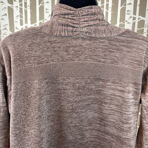 Hinge Lagenlook oversized cropped button up cardigan sweater. Features thin heathered cotton knit in shades of brown and cocoa, 3 button closure, oversized cropped fit, hi-lo hem and dropped sleeves. Gently worn and laundered with some very light pilling from the wash (see last pic). See pics for measurements.