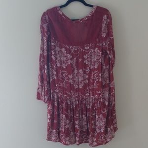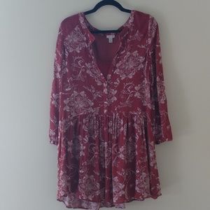 Tunic shirt with floral patterns. Solid colored rust slip included. Crochet shoulder detail