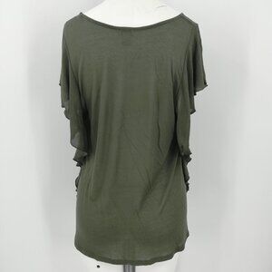 Hinge Sheer Green Ruffle Top Size S Stretch Soft Sleeve Casual Blouse T-Shirt