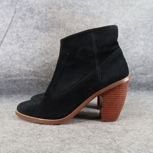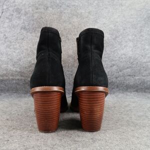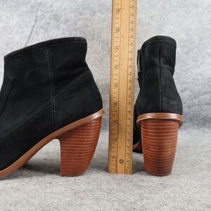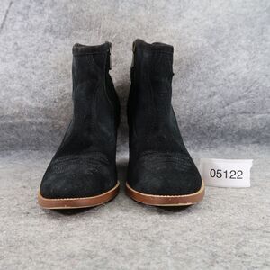 Used Hinge Shoes Womens 7.5 Booties Western Leather Black Stack Heel Embroidered Zip